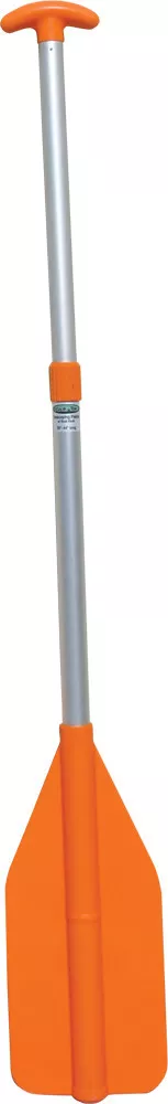These lightweight paddles adjust easily to variable lengths with a simple twist. A section of the aluminum shaft disappears inside the blade to allow for compact storage under boat seats or in PWC storage compartments. The corrosion-resistant aluminum shaft, high-impact molded blade and boat hook handle, and hassle-free locking device ensure years of service. The bright orange blade is great for signaling in emergencies.