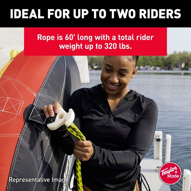 Tow rope for tubing gives you less drag which means less water spray for a great day on the water. The tow rope 2K is made for up to two riders to easily use with a total rider weight up to 320 lbs. and an average break strength of 2,375 lbs.